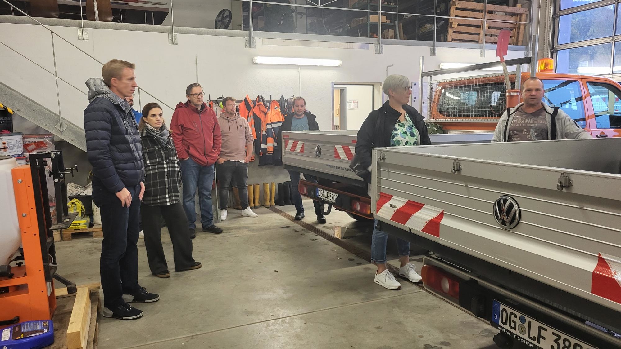 Weiter führte die Info-Tour beim nächsten Termin in den Baufhof der Gemeinde, wo Vorarbeiter Roland Haungs und Bauamtsleiter Wolfgang Flink über das praktisch strukturierte Gelände führte. Der Gemeinderat erfuhr von den vielseitigen Aufgaben des Bauhofes und konnte sich anhand der Erläuterungen zu den dafür eingesetzten Maschinen ein umfassendes Bild machen. Gerade im Bereich der Spielplätze hat sich das Team so spezialisiert, dass nach der grundlegenden Sanierung des Spielplatzes auf dem Rötel und der Schaffung des neuen Spielplatzes am Sportgelände derzeit eine attraktive Spiel-Außenanlage an der neuen Kinderkrippe St. Anna in Eigenregie geschaffen wird.