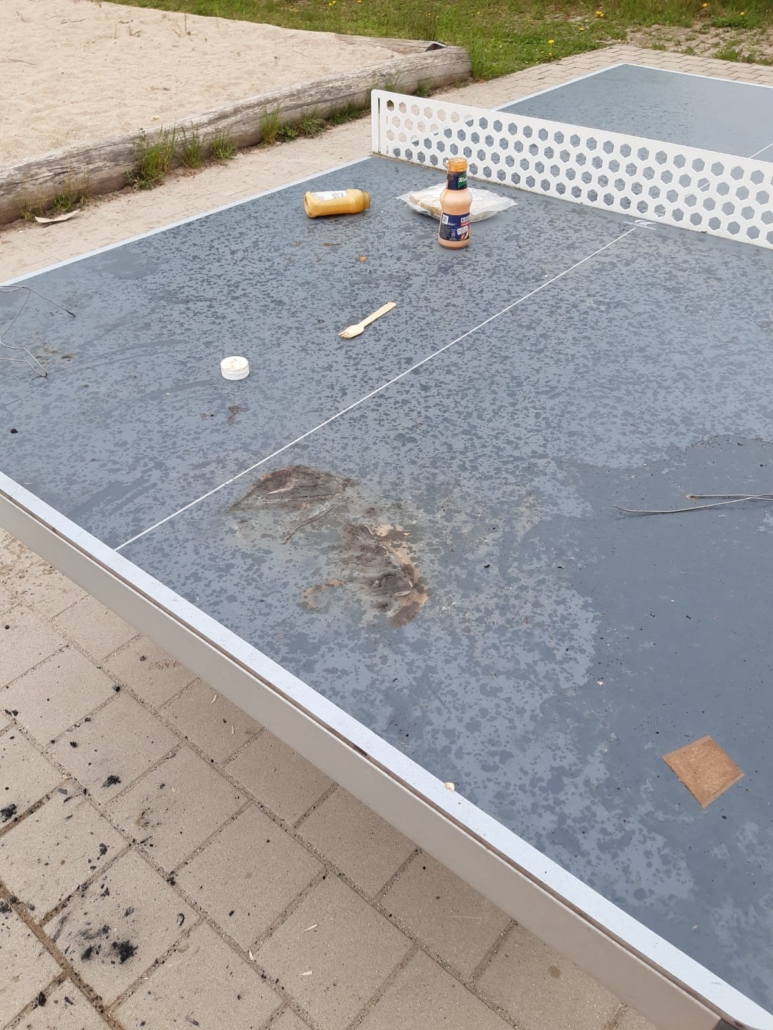 Vermutlich in der Nacht von Montag, 14.4. auf Dienstag, 15.4. kam es durch Nutzung eines Einweg-Grills zu einer erheblichen Schädigung der Outdoor-Tischtennisplatte an der Chilloase beim ehemaligen Hartplatz am Sportgelände (Ortsausgang Richtung Obersasbach). Es wurde Anzeige erstattet.