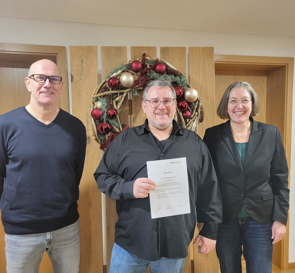 Nach einem sechstägigen Lehrgang in Ludwigsburg hat Bauamtsmitarbeiter Sven Brunner erfolgreich die Prüfung zum kommunalen Energiemanager abgelegt. Die Weiterbildung fand beim Verband der Regionalen Energie- und Klimaschutzagenturen in Baden-Württemberg statt. Brunner ist in der Gemeinde unter anderem für das Geoinformationssystem, das Breitbandnetz sowie das Energiemanagement zuständig.