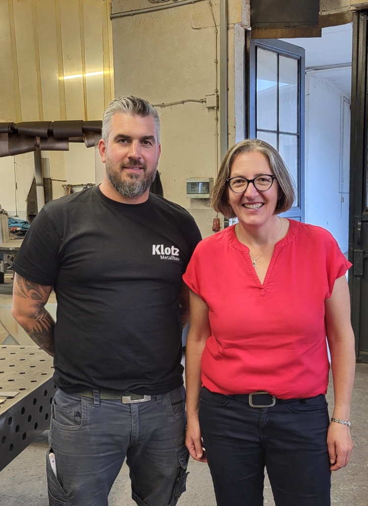 Die Firma Metallbau Klotz in der Hauptstraße wird seit dem Jahr 2019 in der dritten Generation von Dominik Bornefeld geführt. Mit seinen vier Mitarbeitern bietet er Leistungen im Bereich Stahlbau, Industriemontage und Edelstahlverarbeitung an. Besonders gefragt sind auch Geländer, Tore oder Dächer aus Stahl und Edelstahl, die sowohl von Firmen als auch von vielen Privatpersonen nachgefragt werden. Bürgermeisterin Bettina Kist zeigte sich bei ihrem Informationsbesuch beeindruckt von der breiten Palette an Leistungen des bewährten Handwerksbetriebs.
