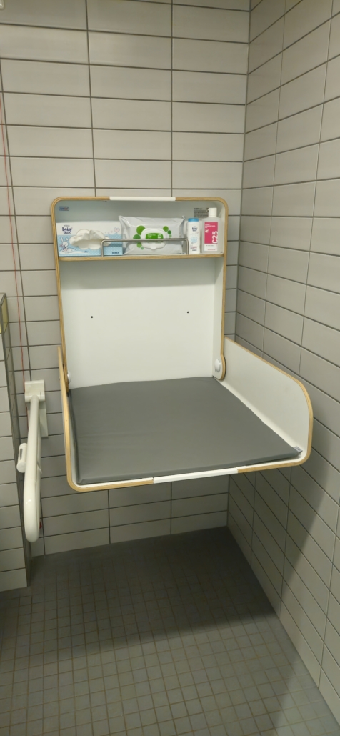 Dieser wurde im Behinderten-WC angebracht. Damit haben Eltern die Möglichkeit, ihre Kinder in ruhiger Umgebung zu wickeln.